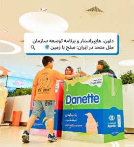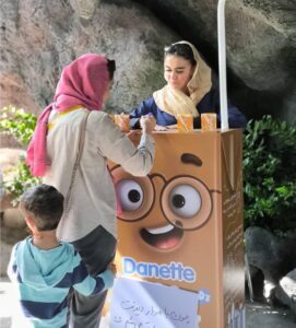 Coinciding with back2school season, the Danette campaign, along with the distribution of sticky notes, was carried out in 8 shopping centers. A total of 50.000 products were sampled, with consumers being asked to write their feelings about the campaign slogan: “آینده با تو شیرینه چون …” Execution Steps Negotiating & Renting location spaces Production of Counters Sampling Execution