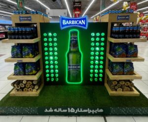 BARBICAN Summer Festival podium designed for following HyperStar locations to encourage consumers to participate in Raffle Draw. – 6 Hyper Star Branches(Tehran & Provinces) – Duration : 30 Days Execution Steps Booth Design Production of Booths Sampling Execution